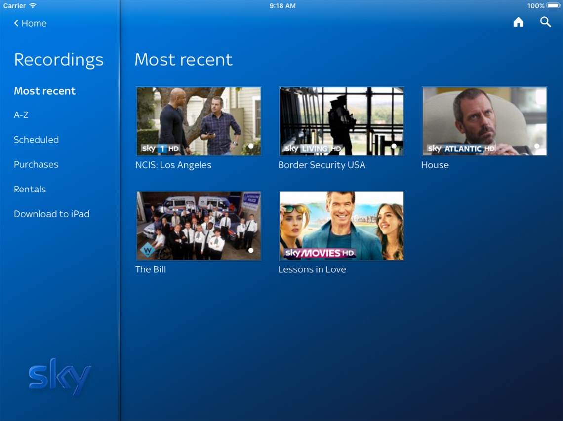 SkyQ is Sky’s new home wireless entertainment system. It gives users the most premium TV viewing experience. One app with more ways to watch. With the SkyQ app you can enjoy your favourite TV and recordings anywhere around your home. You’ll be able to find recent recordings and downloads so you can catch up on your favourite shows in an instant. For the first time you can access shows and recordings from your box on your tablet around your home. Find and manage recordings easily without interrupting your viewing experience on the SkyQ App.